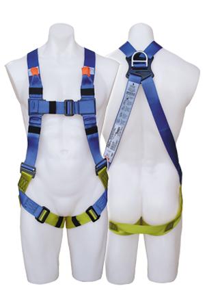 Excellent all around harness at a very competitive price. Made of durable, comfortable blue nylon webbing. The back D-ring is adjustable for fall arrest. Zinc plated stamped steel for provides corrosion resistance. Pass thru buckle style leg straps and chest make it easy to put on. This harness meets all applicable industry standards including OSHA and ANSI