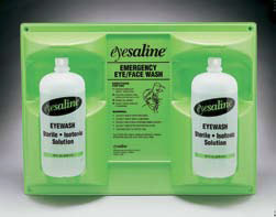 Sperian Saline Wall Stations Provide immediate flushing until the injured person can be helped to a primary emergency eyewash device. Highly visible and readily available for emergency flushing and decontamination.32 oz Wall Station (Double) Sterile Eyewash, Double 32 oz. Bottle Wall Station English/Spanish (Mexico) Case Qty: 4 Case Dimentions: 25" x 9" x 15"