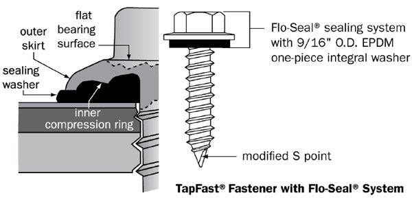 High-performance fastener designed specifically for attaching light-gage metal panels (18 ga. max.) to wood frame structures. Unique Flo-Seal® washer design provides enhanced sealing capabilities.